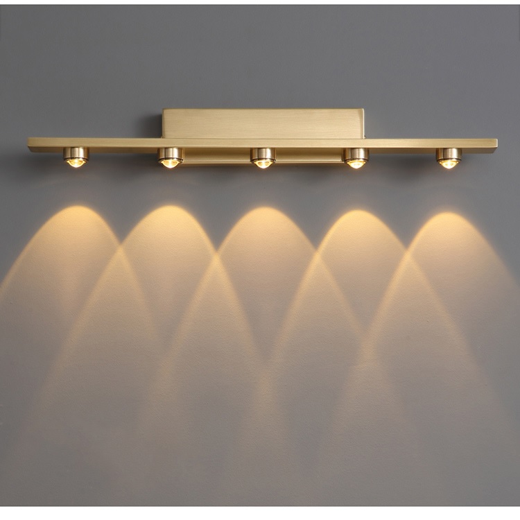 - Đèn spotlight gắn tường: Thường đặt hai bên hoặc phía trên gương, giúp ánh sáng phân bổ đều, hạn chế bóng đổ trên khuôn mặt.