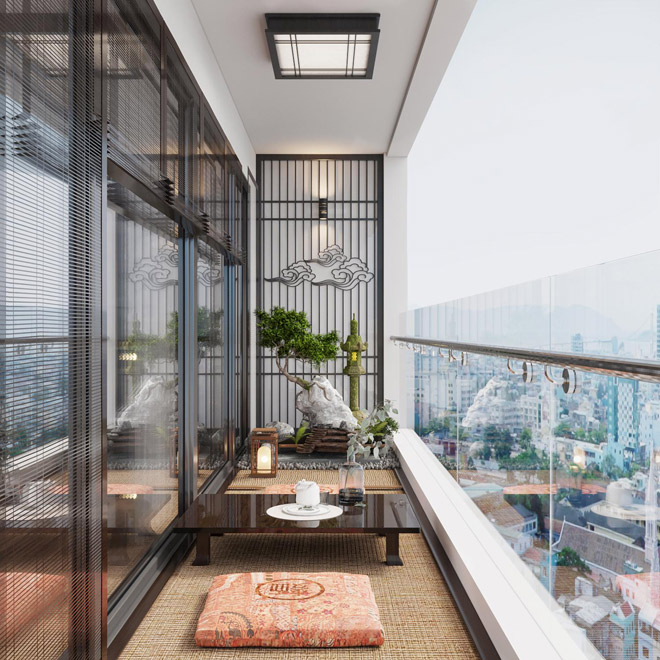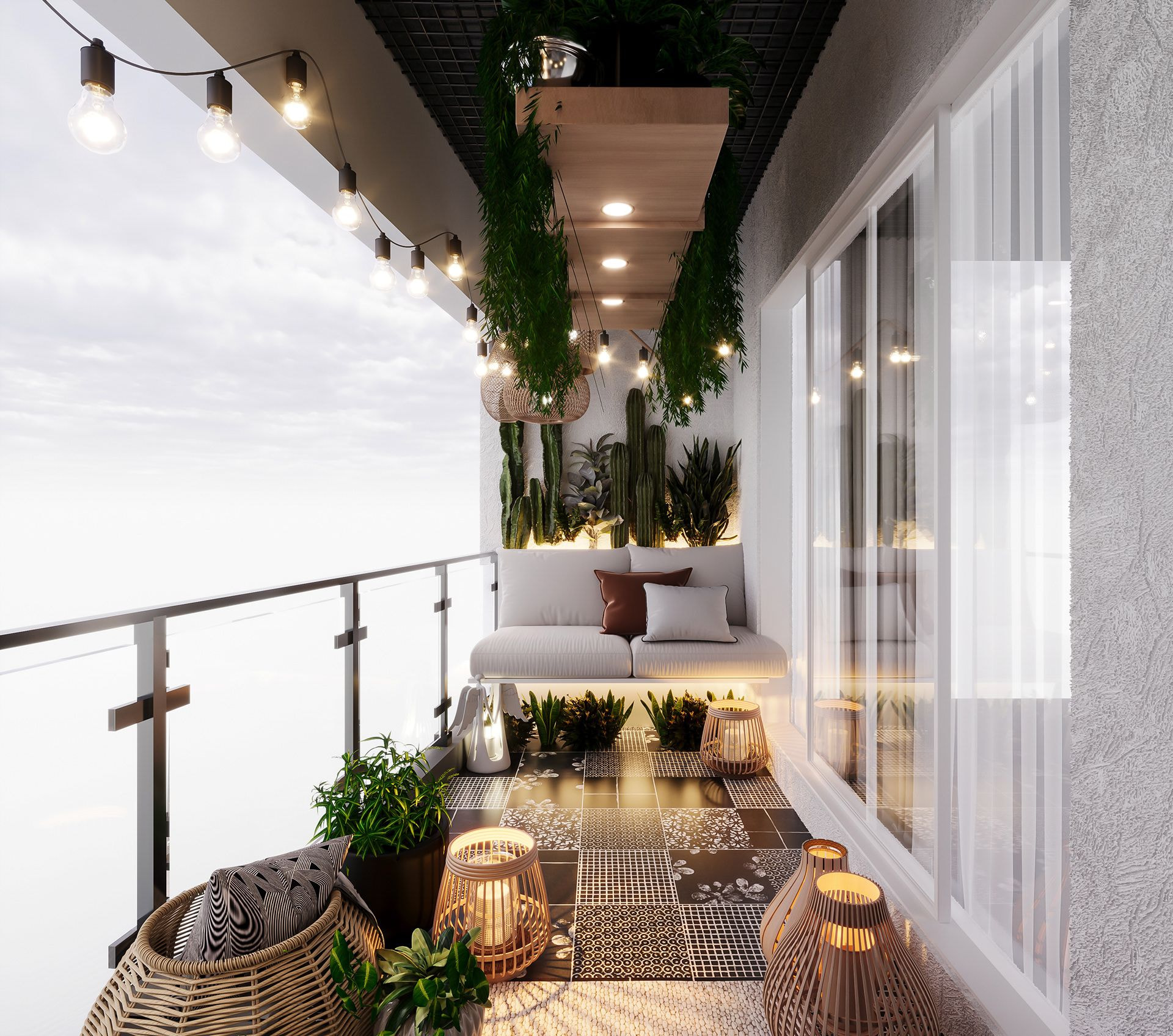 Ban công không cần quá nhiều đèn. Việc sử dụng vừa đủ sẽ giúp không gian hài hòa, tránh gây chói mắt.